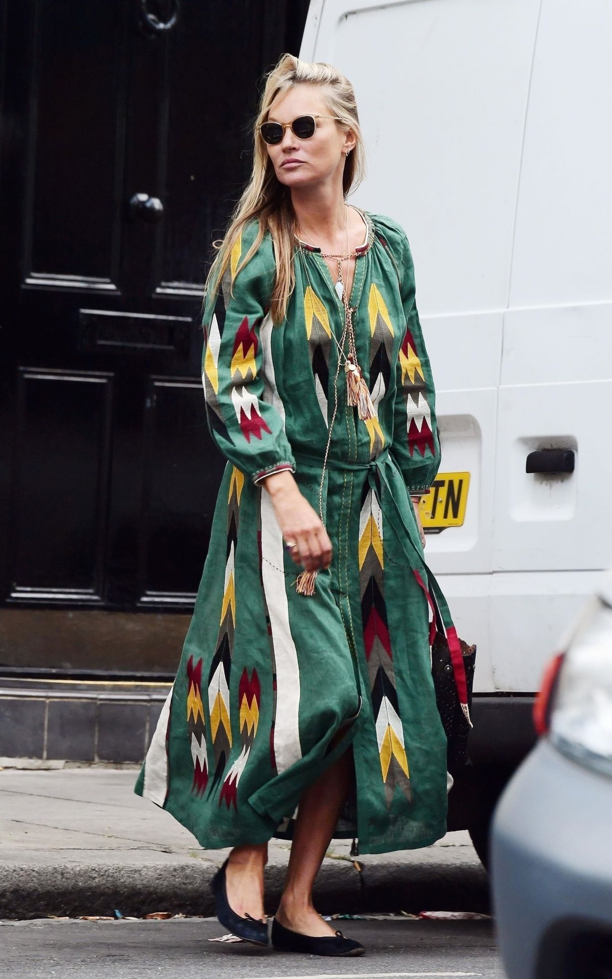 에스닉한 원피스에 편한 스타일의 케이트 모스