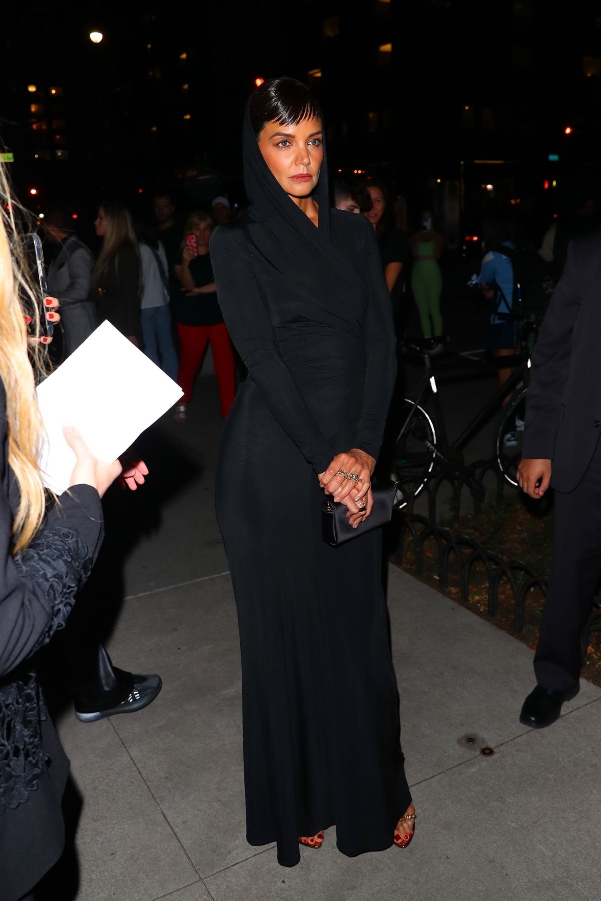 톰 포드의 저지 후드 이브닝 드레스를 입은 케이티 홈즈