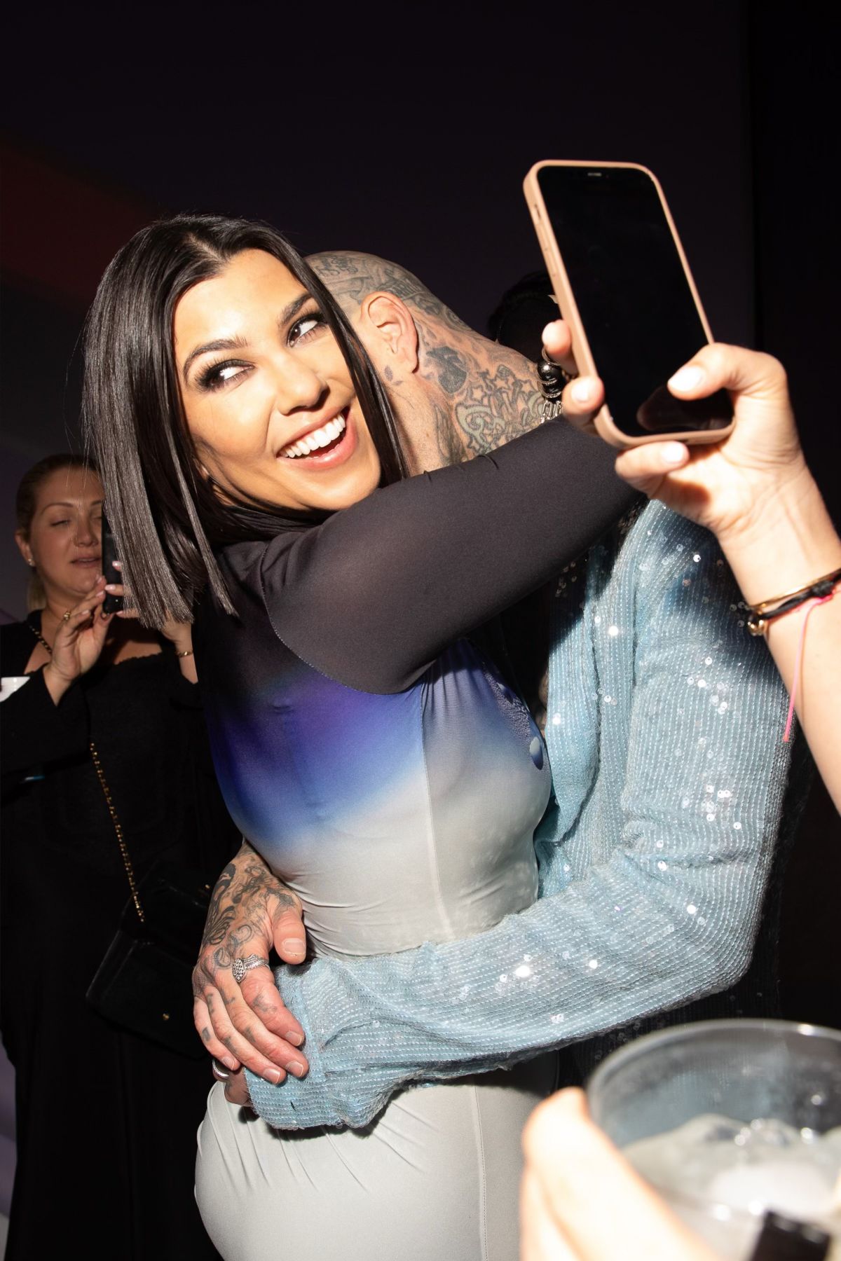 코트니 카다시안의 브랜드 Lemme 런칭 파티에서 모놋 코르셋탑과 스커트 착장의 딕시 더밀리오